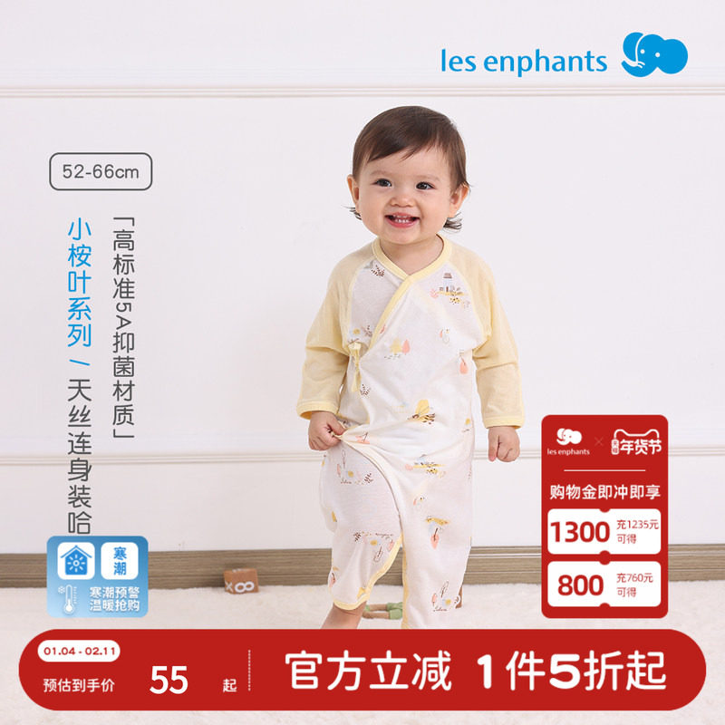 丽婴房宝宝天丝连体衣新生儿5A抑菌连身装哈衣婴儿爬服2025新款
