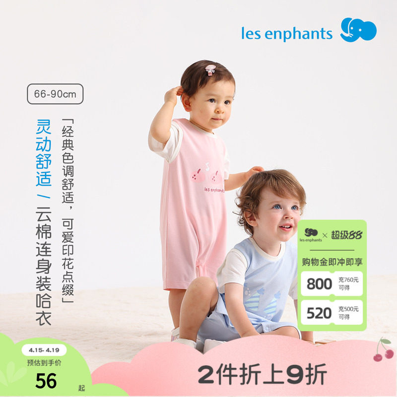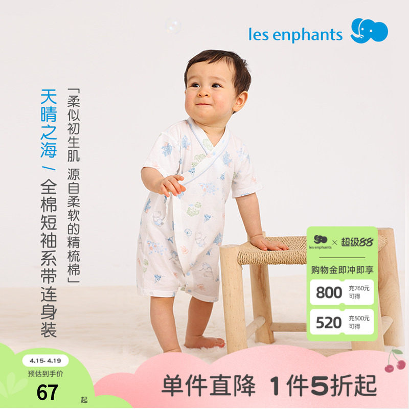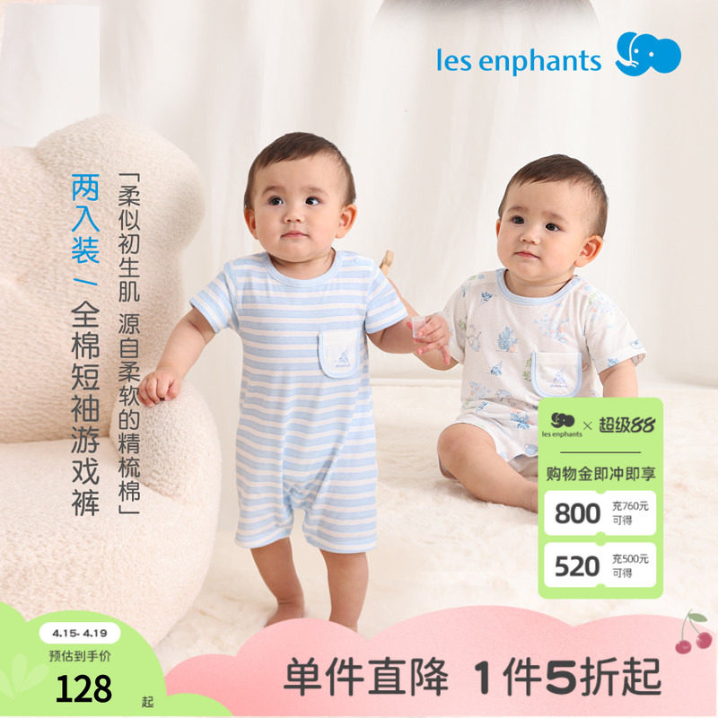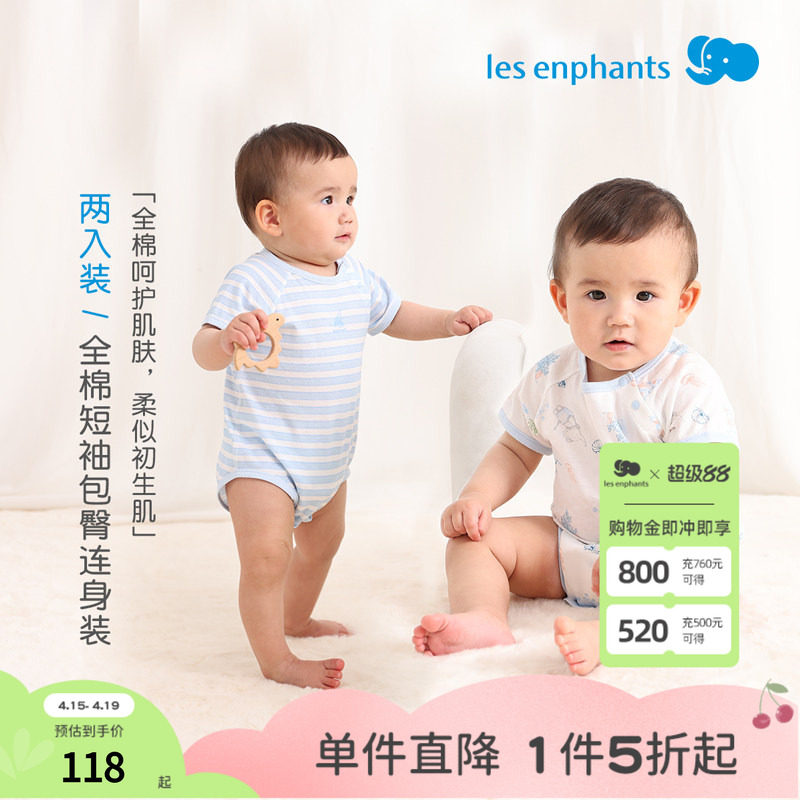 丽婴房全棉连体衣新品宝宝哈衣新生儿爬服夏季婴儿睡衣短袖包臀衣