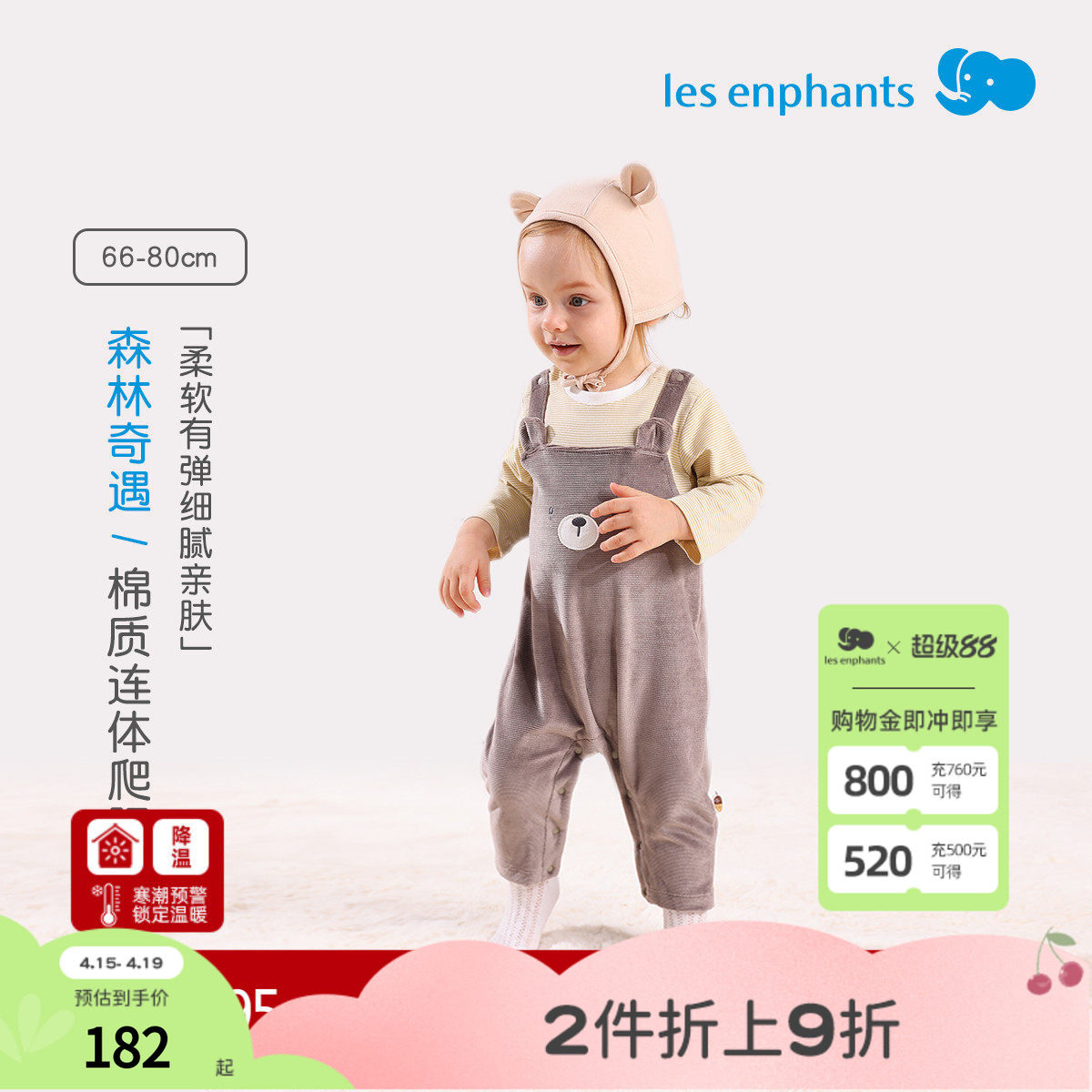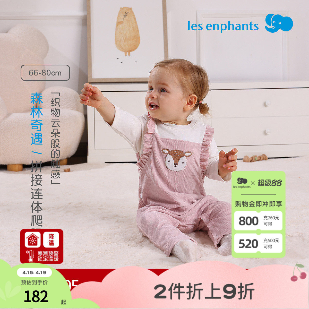 样衣特卖 丽婴房专柜正品 婴幼儿新生系带连身装连体爬服0-2岁
