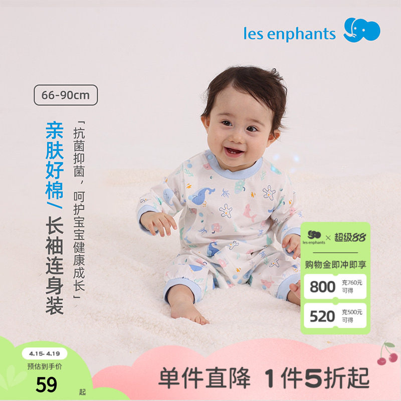 包邮丽婴房专柜正品内衣 婴儿新生长袖连身装连体爬服 春夏薄款