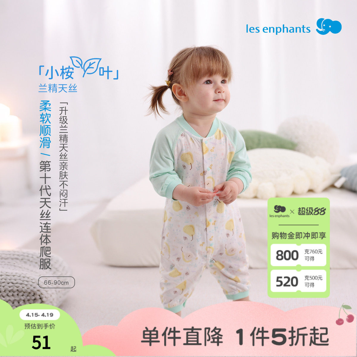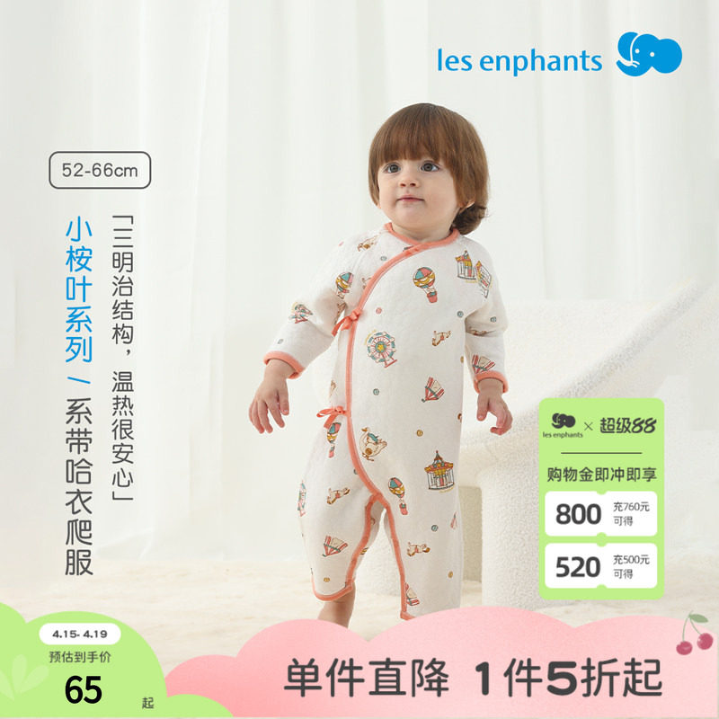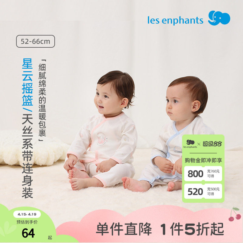 丽婴房【小桉叶】第十代天丝新生儿系带连身衣爬服婴童哈衣空调服