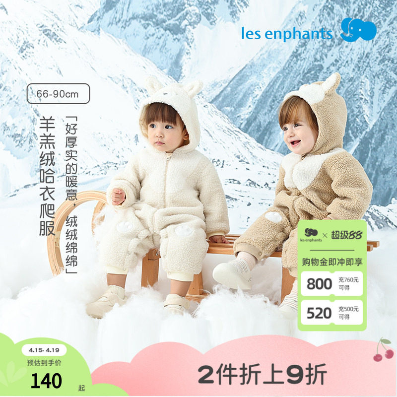 丽婴房冬新款男女宝宝薄棉连体衣摇粒绒加厚长袖哈衣婴儿爬服外出