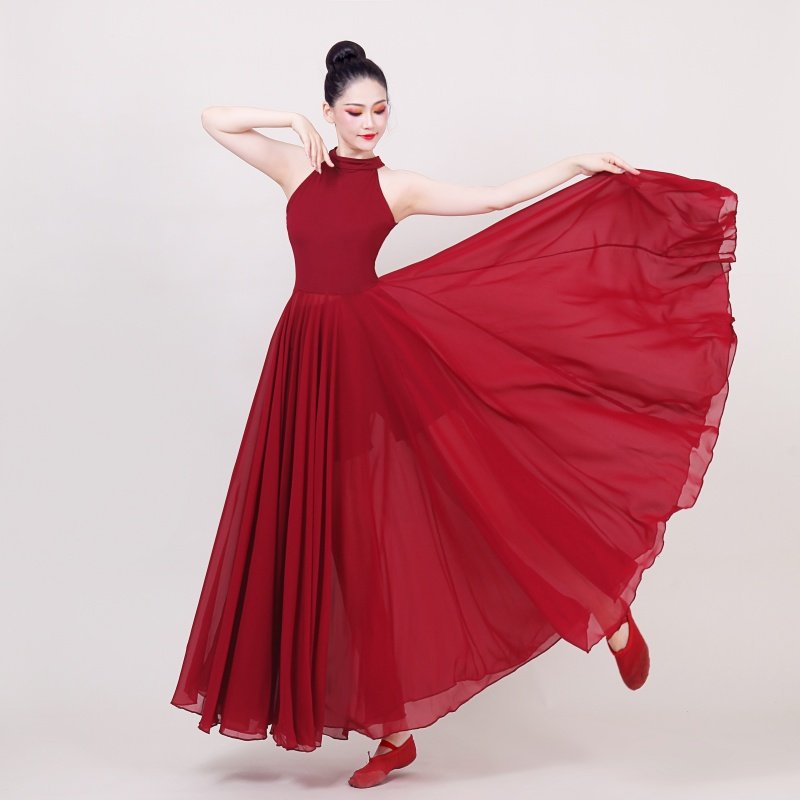 720度舞蹈大摆裙古典舞连衣裙集体合唱服比赛演出广场舞练功长裙