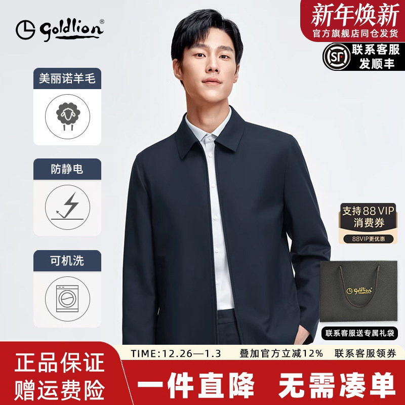 【可机洗羊毛】金利来官方25秋冬新款男士行政夹克通勤翻领外套男
