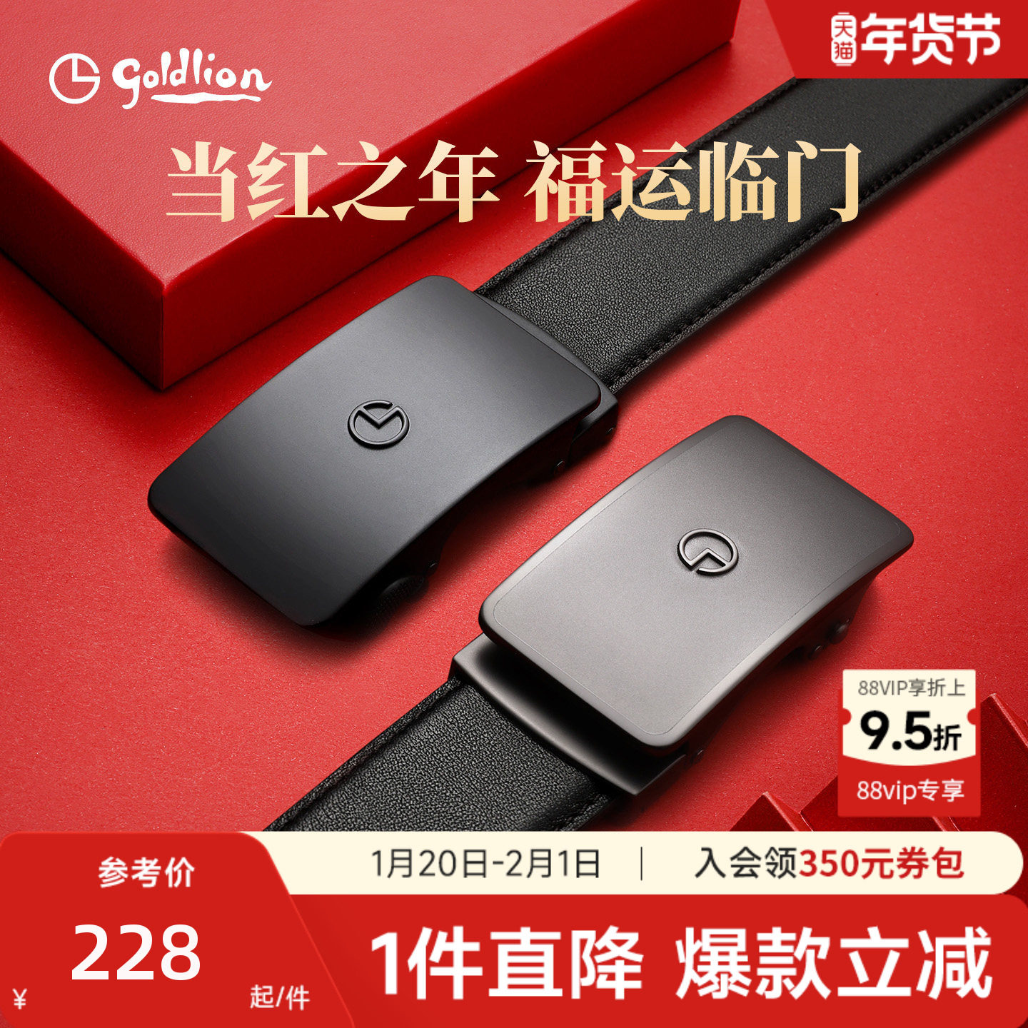 【本命年】金利来皮带男士2026年新款真皮马年送礼结婚红色裤腰带
