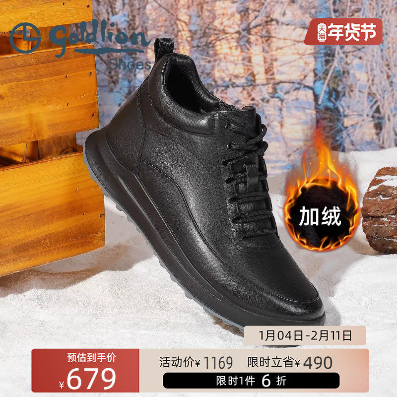 【冬靴299-599元专区】金利来官方男鞋厚底保暖雪地靴男士真皮