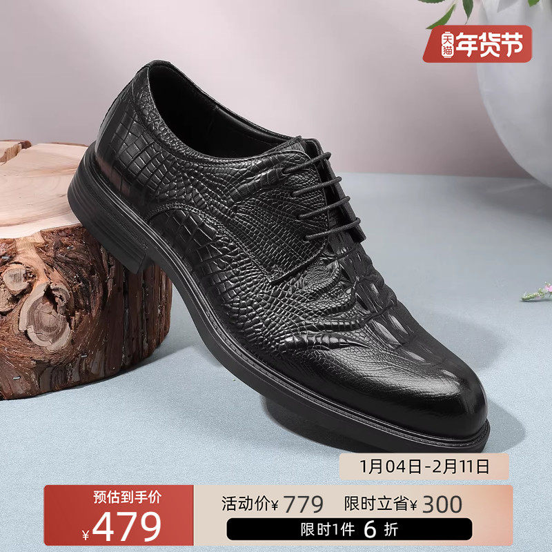 金利来官方正品男鞋商务正装皮鞋鳄鱼纹轻奢德比鞋系带商务西装鞋