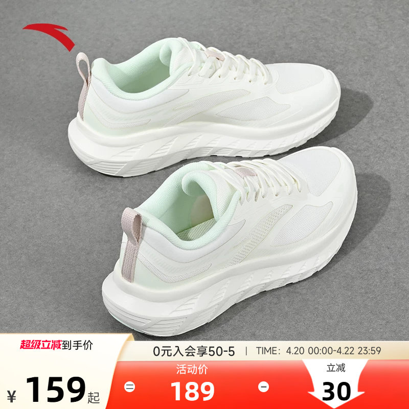 安踏女鞋厚底跑步鞋女夏季新款轻便减震白色运动鞋跑鞋增高小白鞋