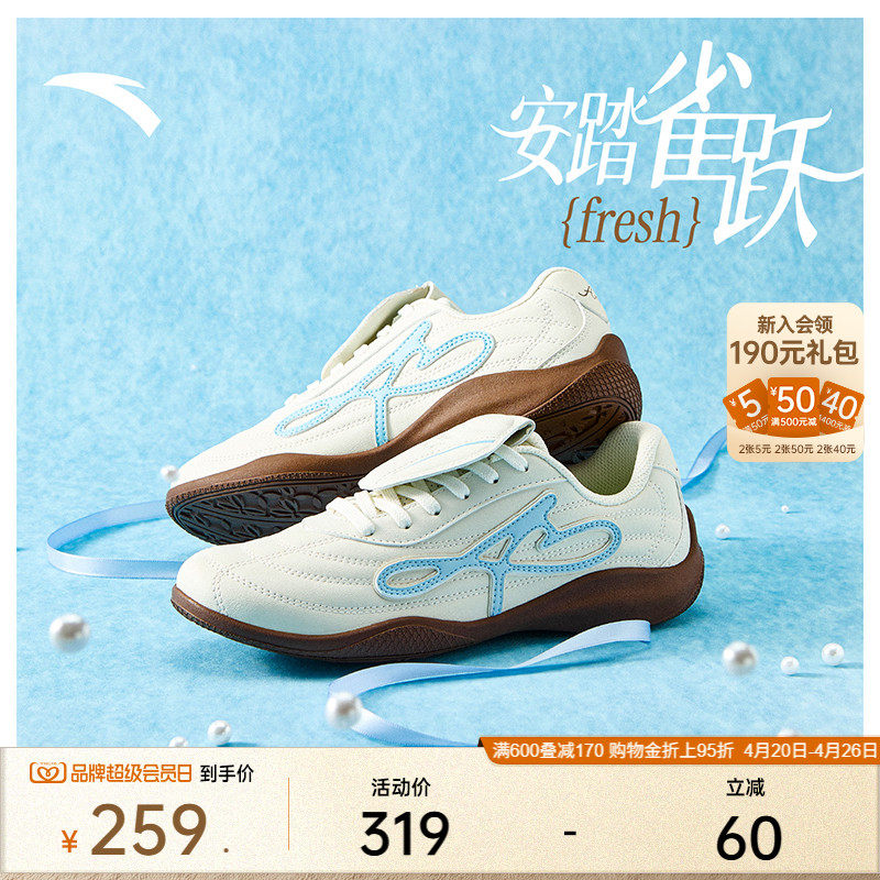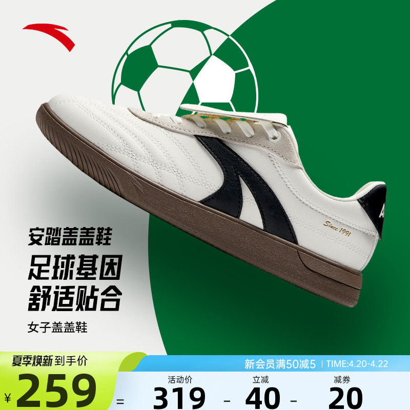 安踏雀跃fresh丨经典足球风薄底德训鞋女鞋平底板鞋百搭运动鞋子