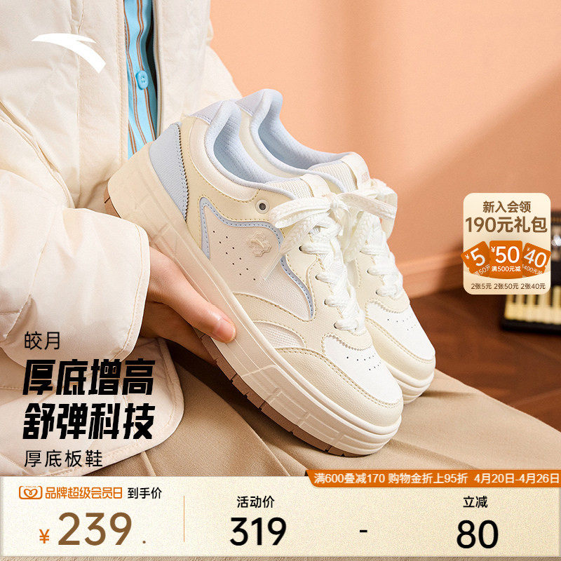 安踏轻程丨厚底板鞋女鞋2026夏季小白鞋休闲鞋增高复古百搭运动鞋
