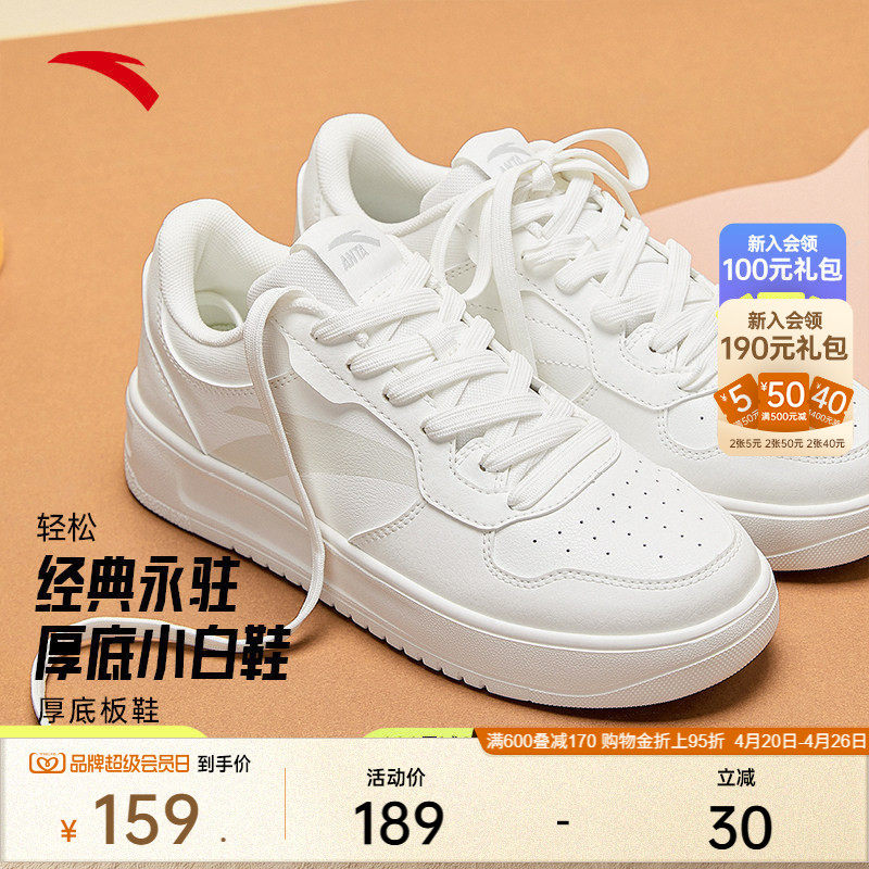 安踏元年小白鞋丨经典板鞋女鞋夏季舒适厚底增高轻便休闲鞋运动鞋