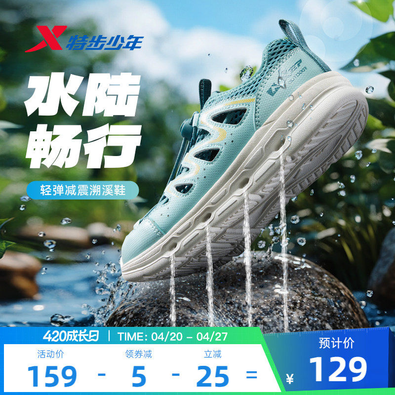 特步儿童溯溪鞋户外运动凉鞋男童夏新款踩水一脚蹬2026涉水沙滩鞋