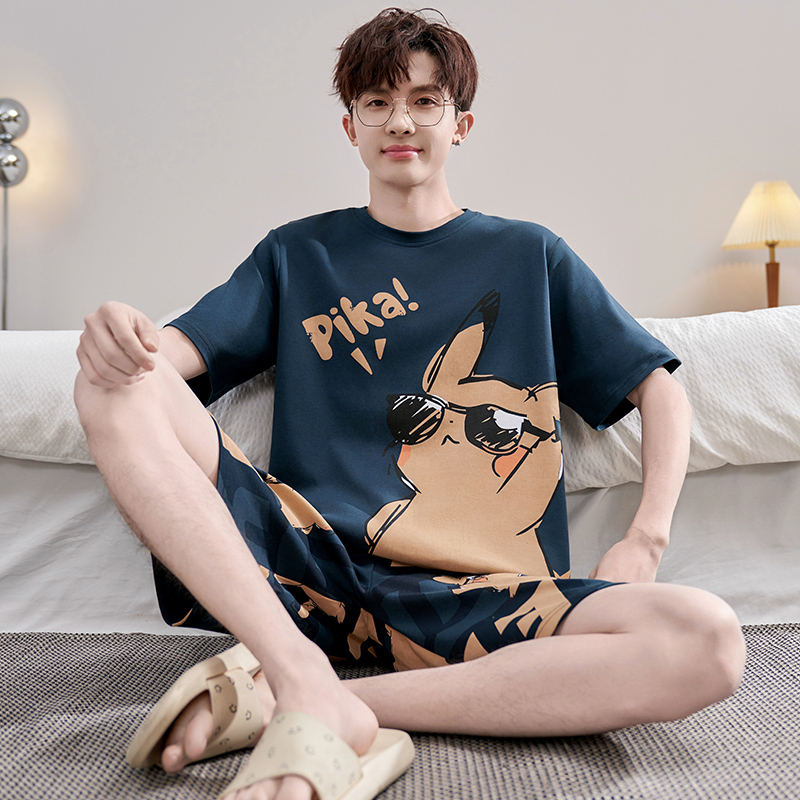 夏季睡衣男短袖纯棉卡通休闲居家服大码男士可外穿青年春夏天套装