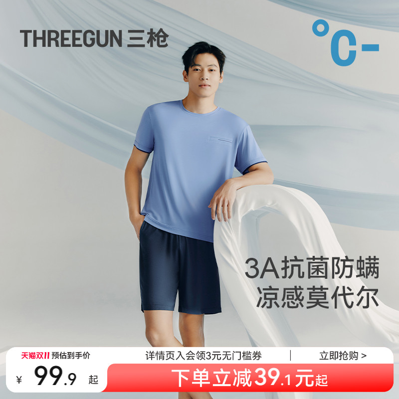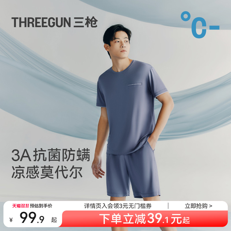 浪莎夏季睡衣男士短袖莫代尔薄款青少年男款夏天可外穿家居服套装