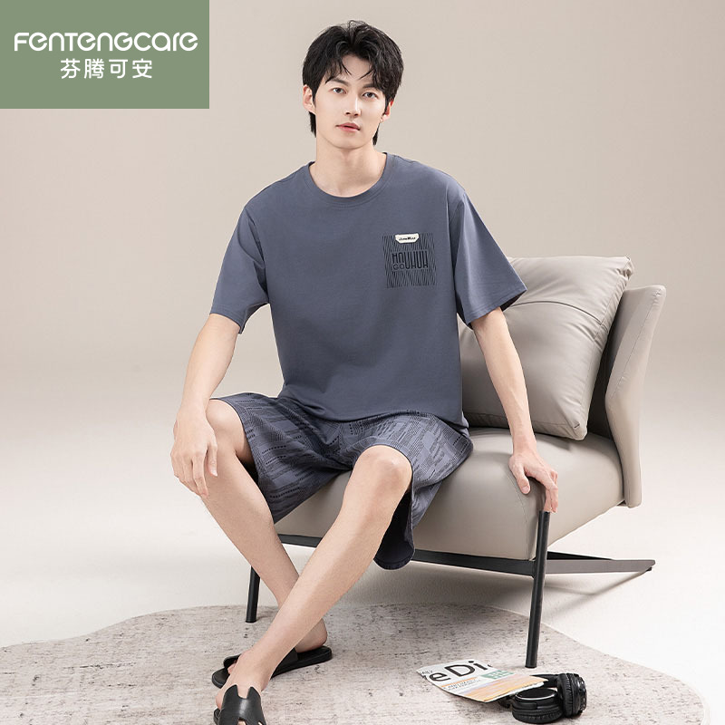 芬腾夏季睡衣男纯棉短袖短裤青年薄款夏天休闲大码全棉家居服套装
