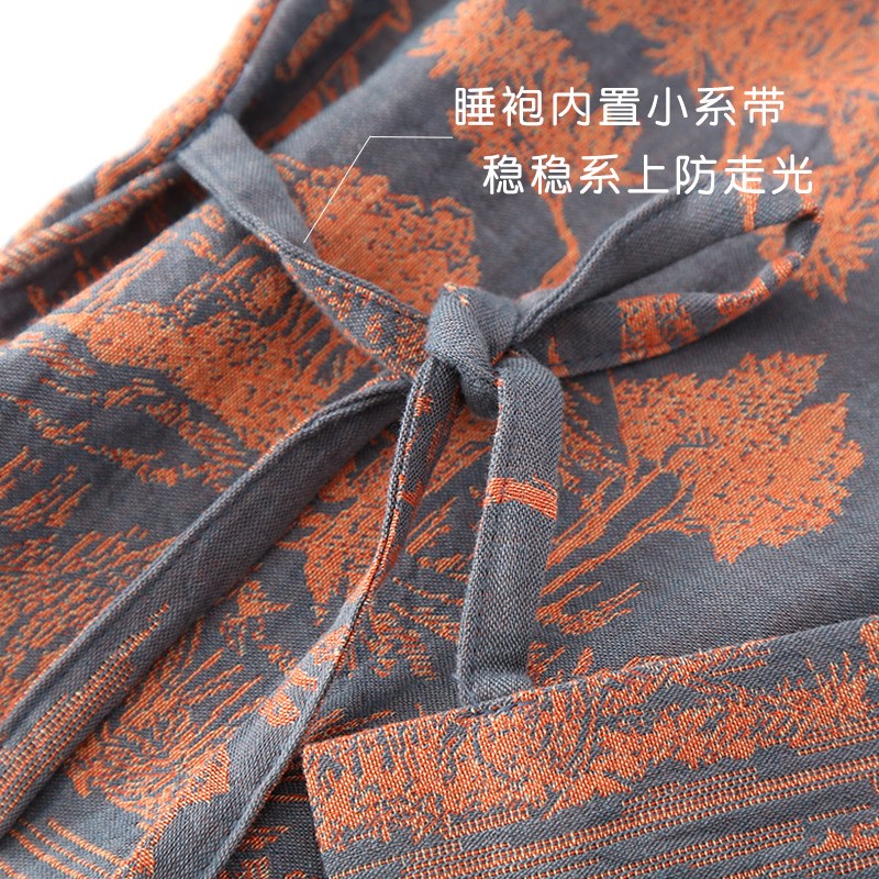 夏季睡衣男士睡袍纯棉纱布男款浴袍日式春夏款夏天和服领全棉长款
