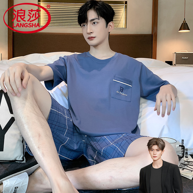 浪莎夏季睡衣男短袖纯棉薄款睡衣男短裤套装全棉家居服可外穿大码