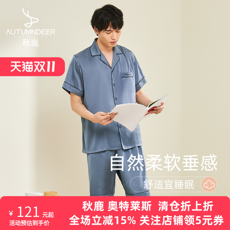 秋鹿夏季睡衣男薄款冰丝居家服凉感透气仿真丝男士短袖家居服套装