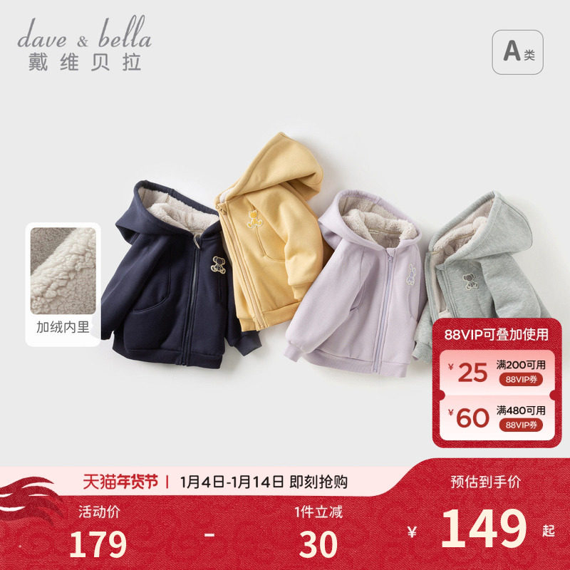 戴维贝拉儿童外套冬季男女童加绒保暖卫衣宝宝红色新年拜年服春装