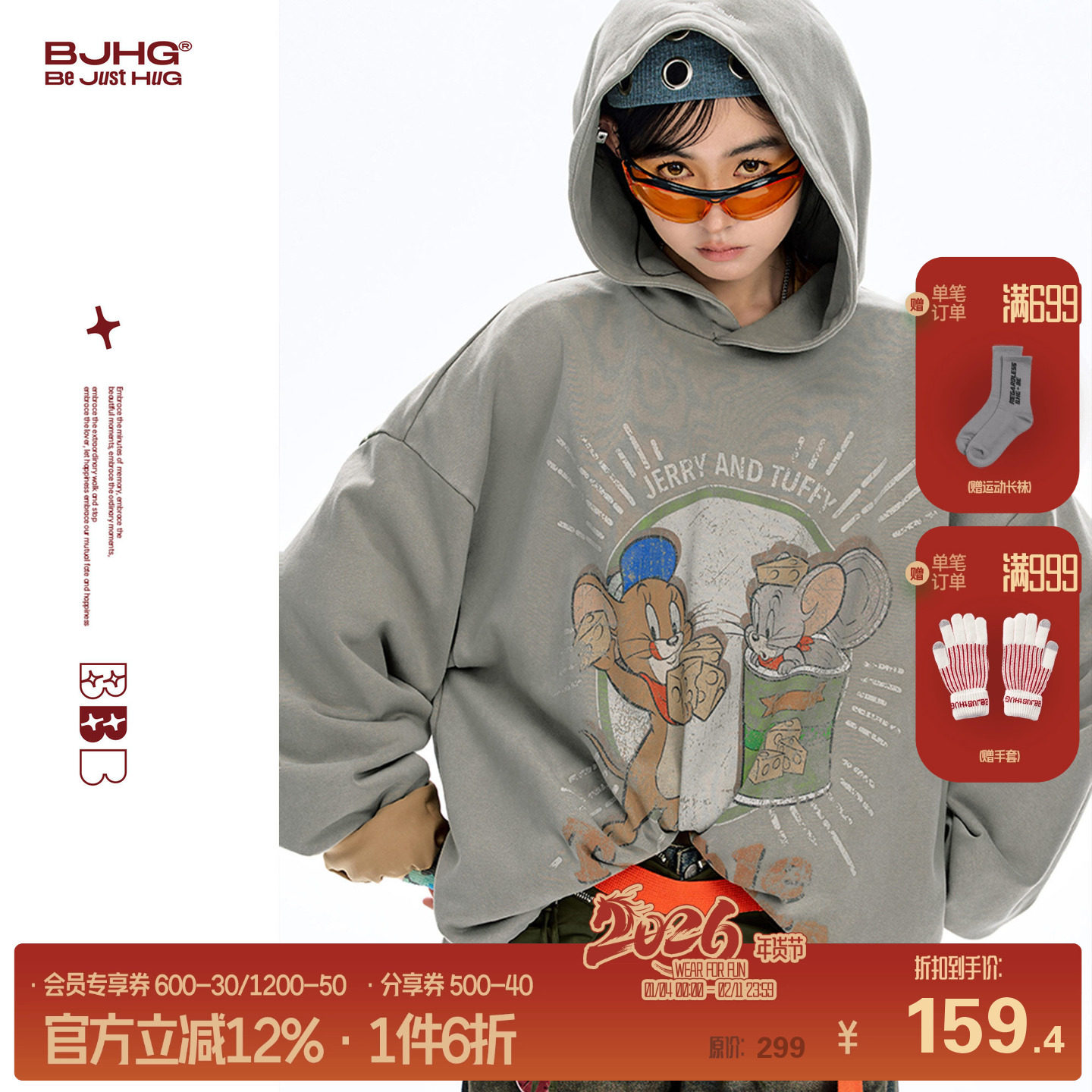 【猫和老鼠联名】BJHG不计后果美式连帽卫衣男款春季情侣款外套女