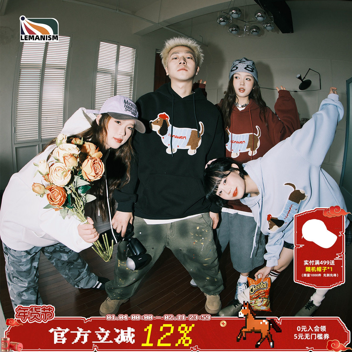 明星同款lemanism腊肠狗400G春秋加绒连帽卫衣男宽松情侣外套女潮