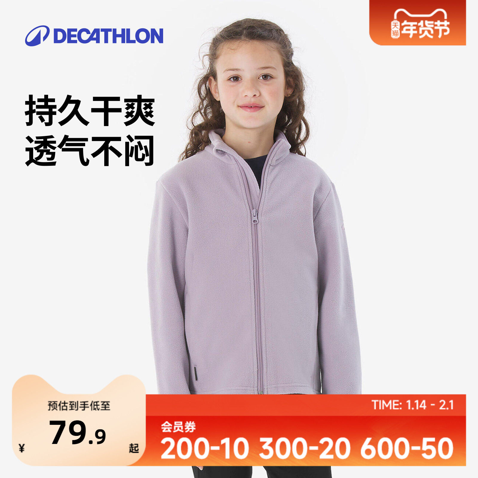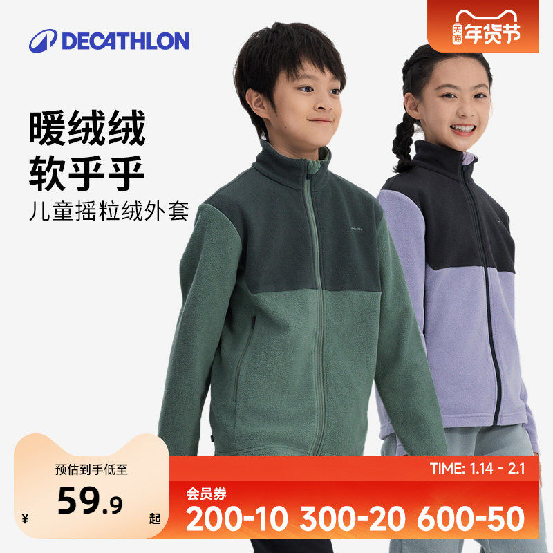 迪卡侬儿童抓绒衣外套男童冲锋衣内胆加绒卫衣春秋女童摇粒绒KIDS