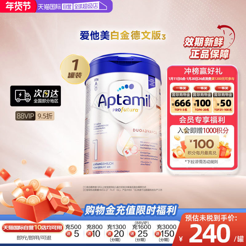 爱他美(Aptamil)德国白金版1段宝宝新生婴幼儿配方奶粉官方授权