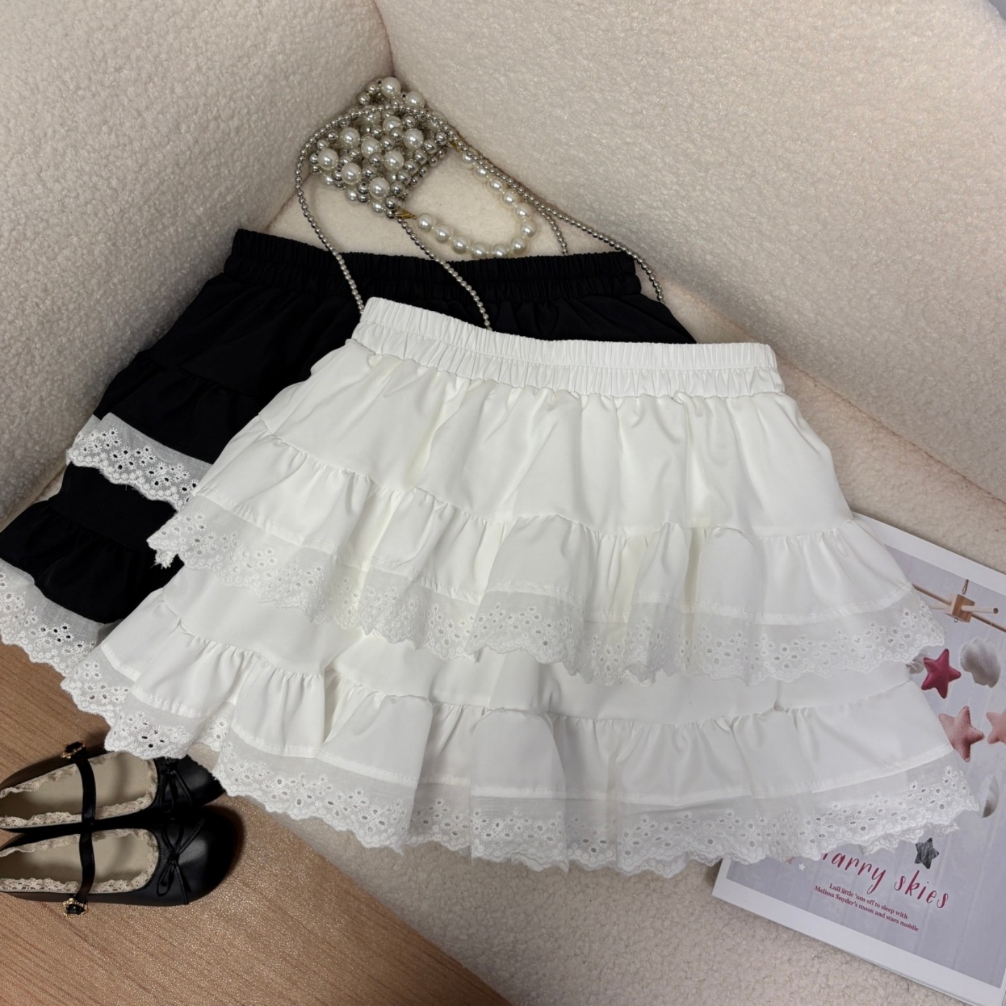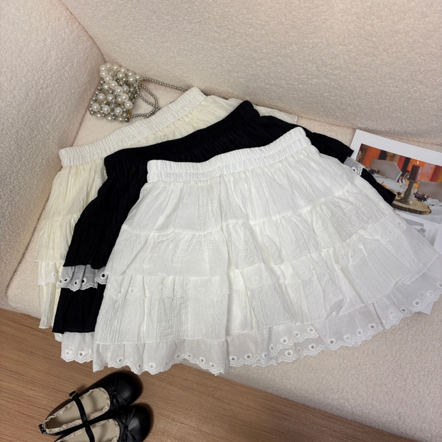 白色蕾丝蛋糕蓬蓬裙女甜美半身裙A字裙高腰显瘦防走光芭蕾风短裙