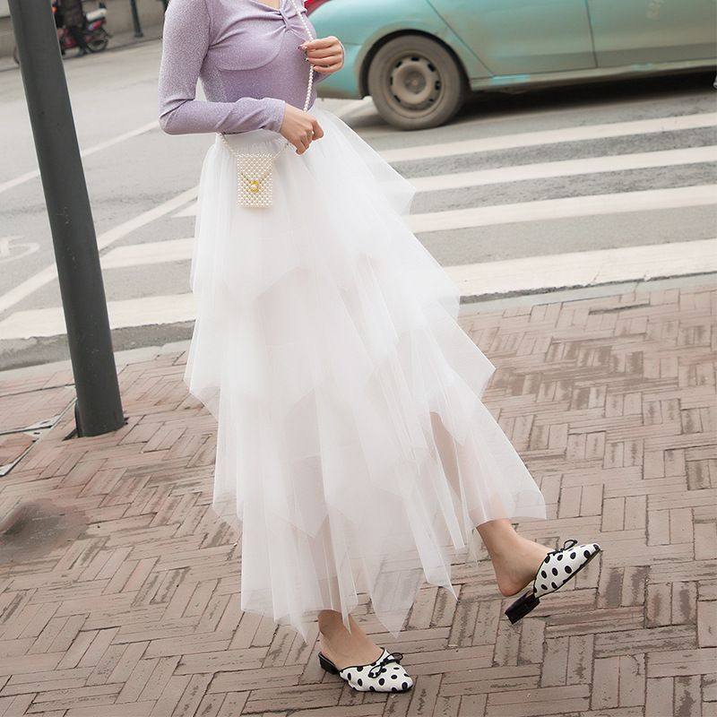 2025新款网纱半身裙纱裙拖地大摆高腰长裙显瘦a字裙蓬蓬多层裙仙