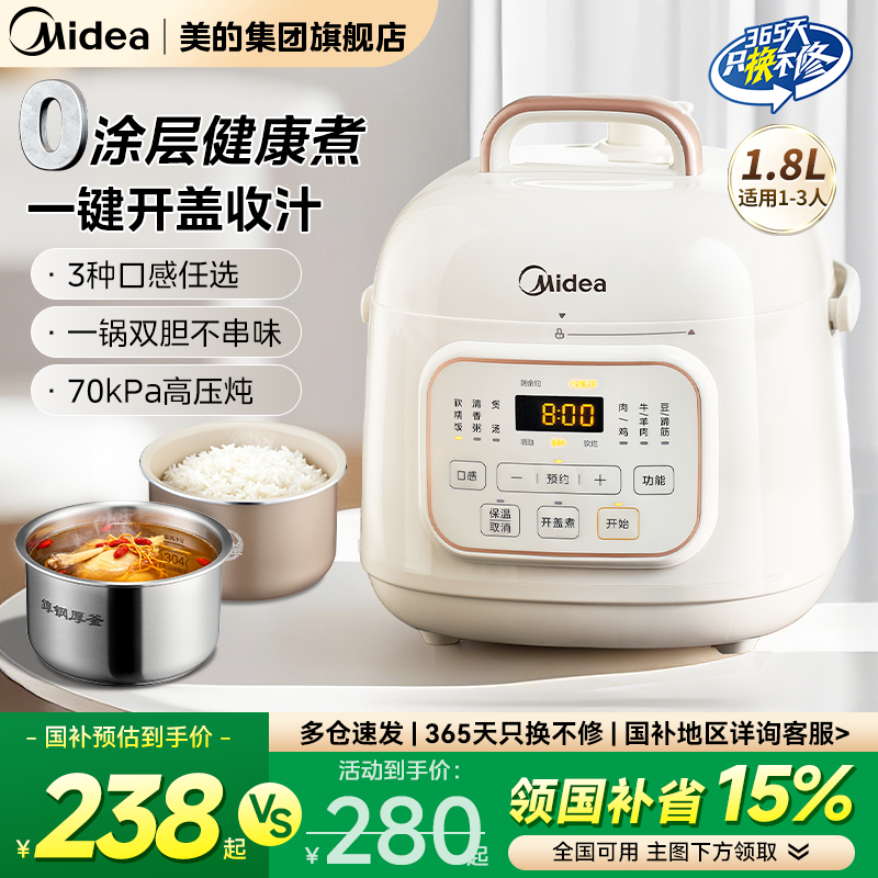 美的电压力锅家用0涂层小型迷你高压锅2人电饭煲饭煲新款官方正品