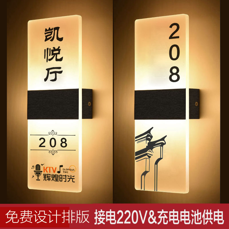 酒店客房宾馆水疗会所餐厅带灯标识牌包房牌KTV充电电池发光门牌