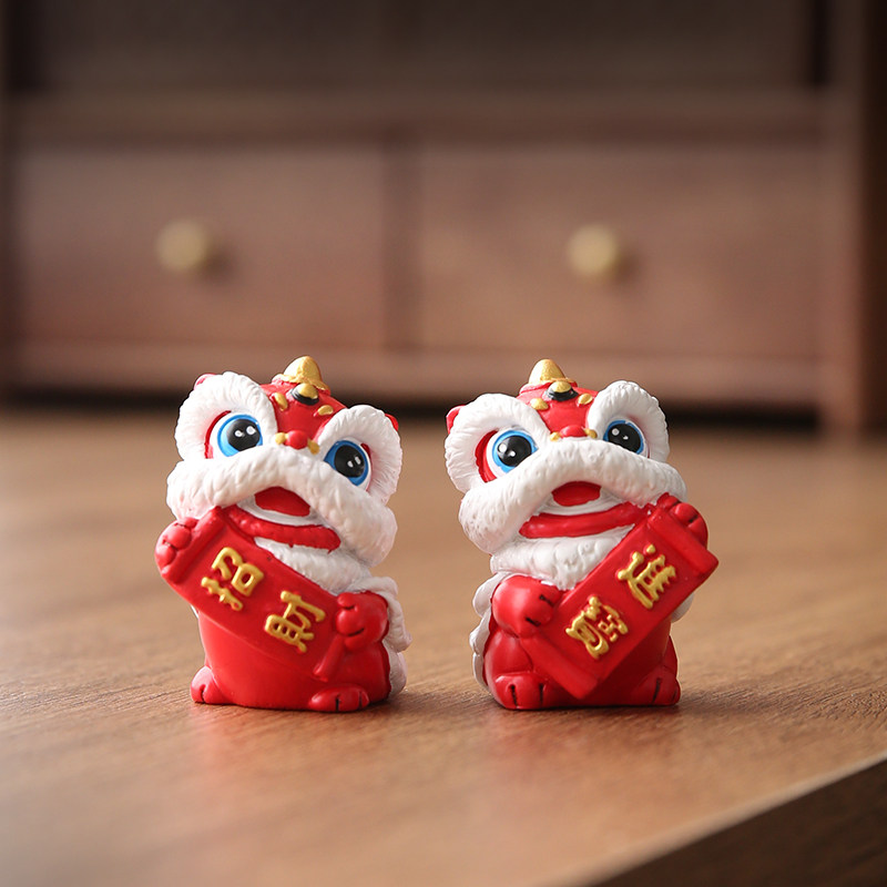桌面摆件石狮子招财办公室微景观鱼缸造景醒狮茶宠创意家居装饰品