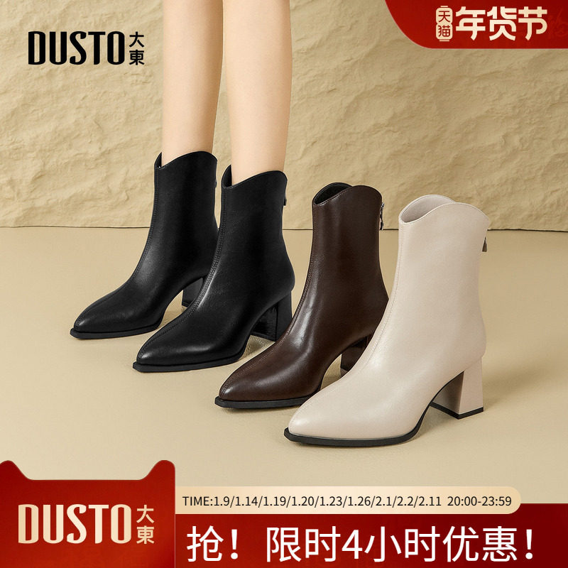 大东时装靴2025年冬季新款简约女鞋粗跟高跟尖头后拉链002380E