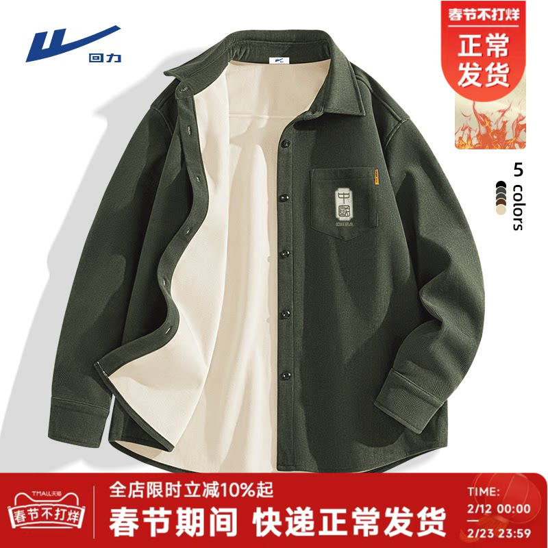 回力加绒衬衫男冬季2025新款加厚灯芯绒衬衣新中式绿色外套春装Y