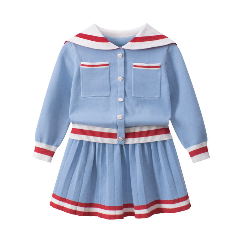 27home品牌海军翻领毛衣套装裙春装女童针织衫短裙春秋连衣裙学院