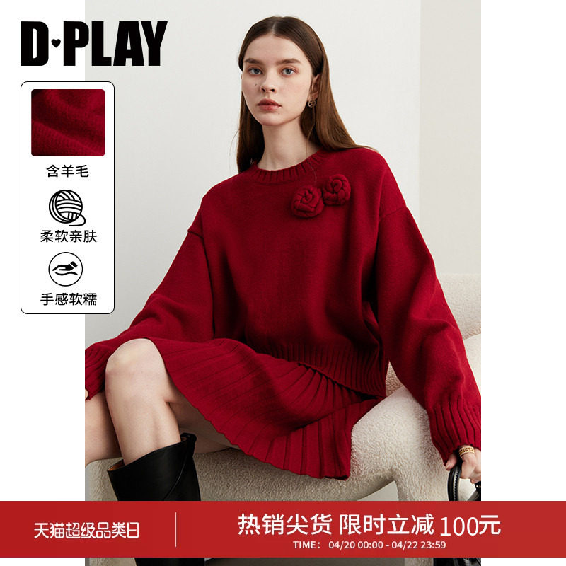 DPLAY冬季新款红色套装红色毛衣短裙针织套装半身裙女2件套