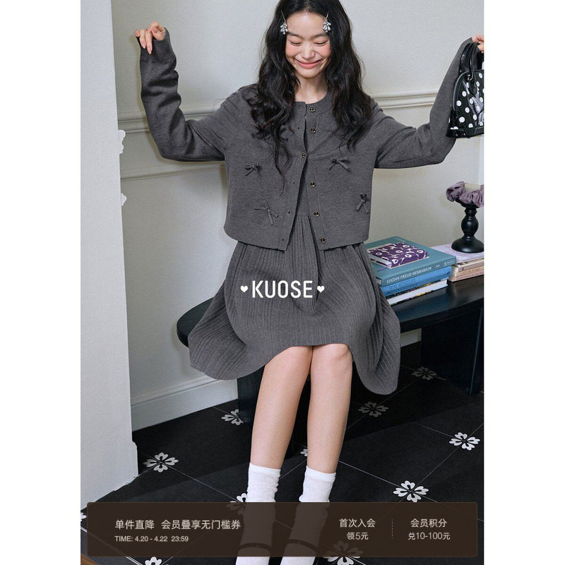 阔色针织衫开衫背心裙两件套装25秋季新款女上衣毛衣连衣裙短裙灰