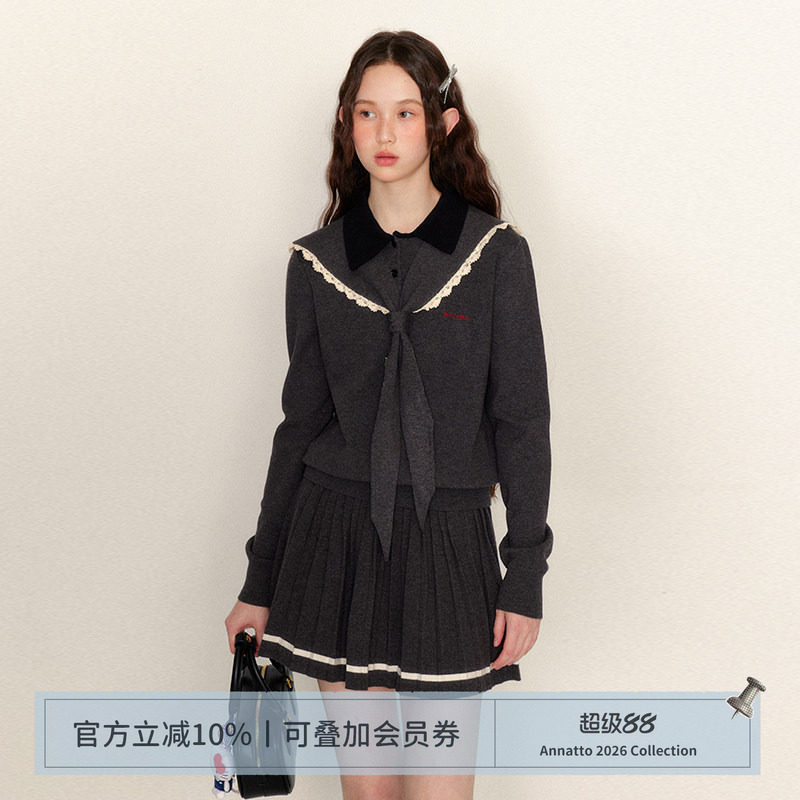 ANNATTO航海日记 针织套装女时尚两件套可拆卸海军领毛衣百褶短裙