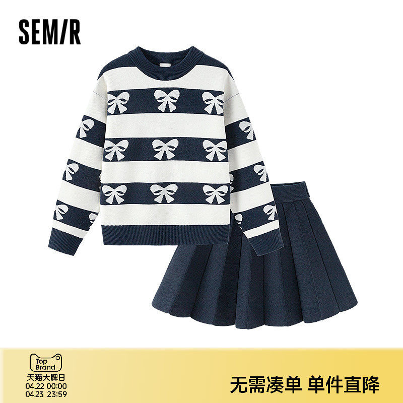 森马儿童毛衣套装2024新款短裙两件套蝴蝶结提花冬装甜美女童装潮