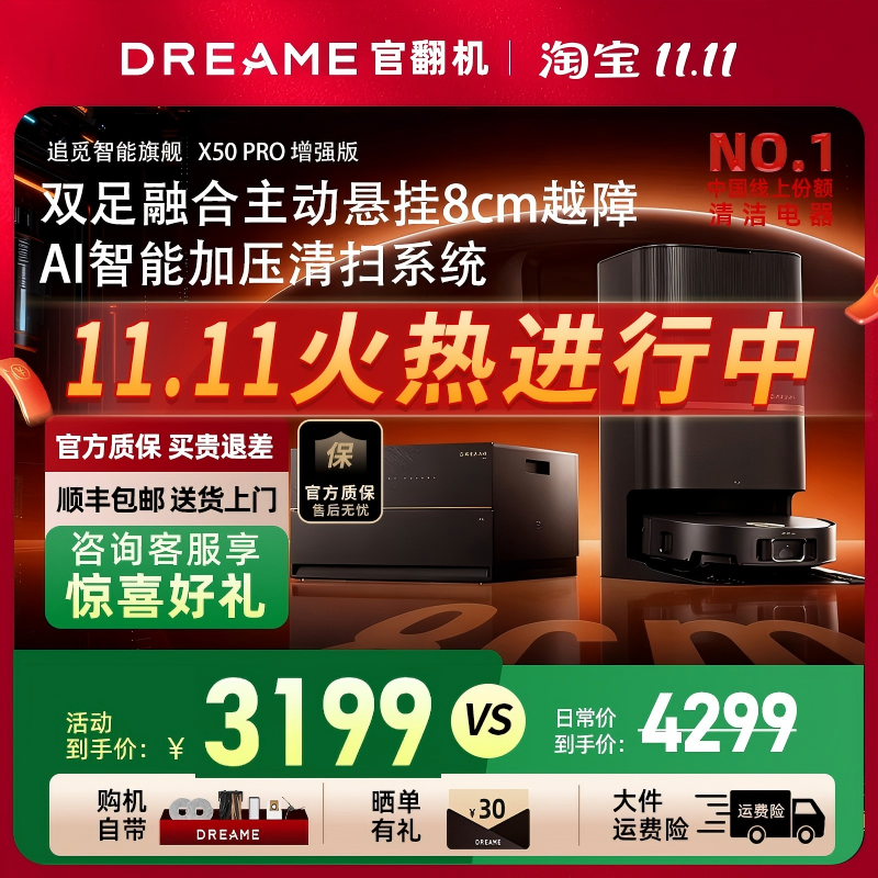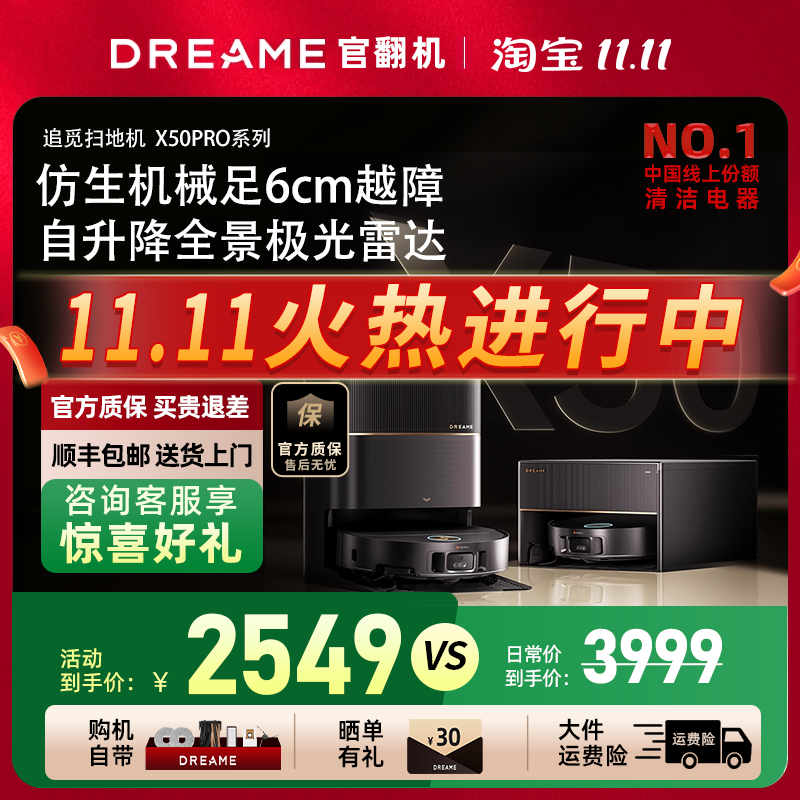 追觅X50Pro增强超薄扫地机器人AI智能拖地一体全自动上下水官翻机
