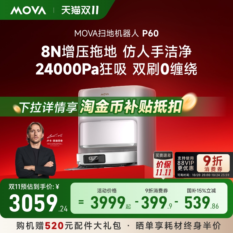 【国补15%】MOVA P60扫地机器人全自动家用超薄洗拖地一体机