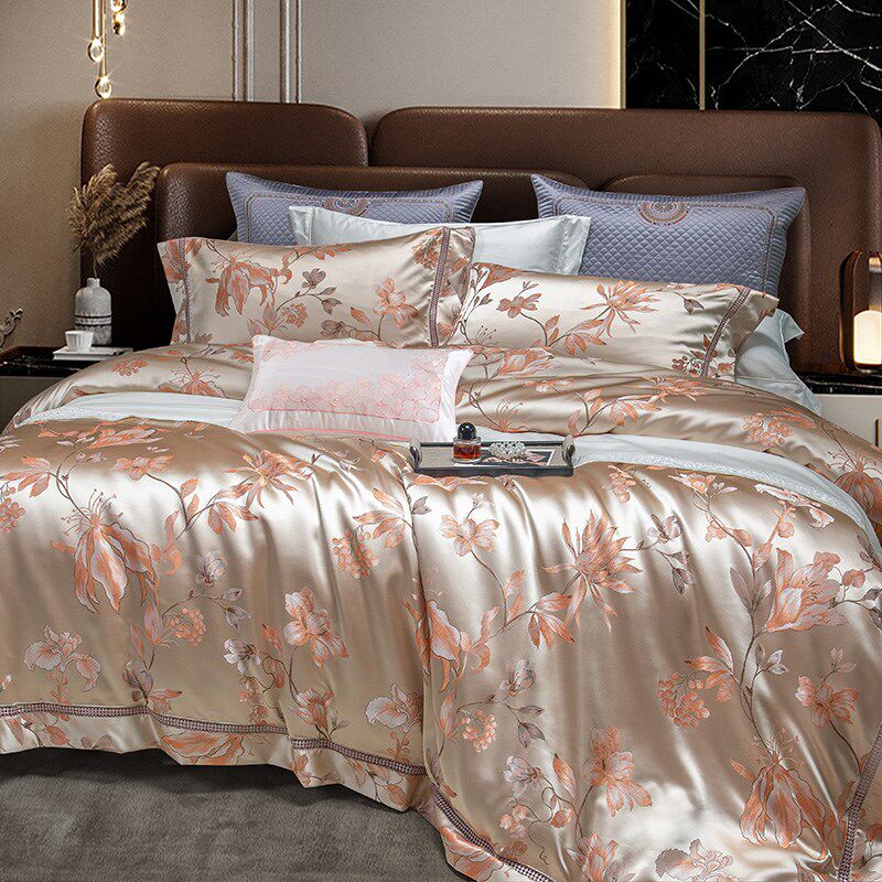 欧式140支埃及长绒棉四件套全棉贡缎提花被套别墅床上用品套件