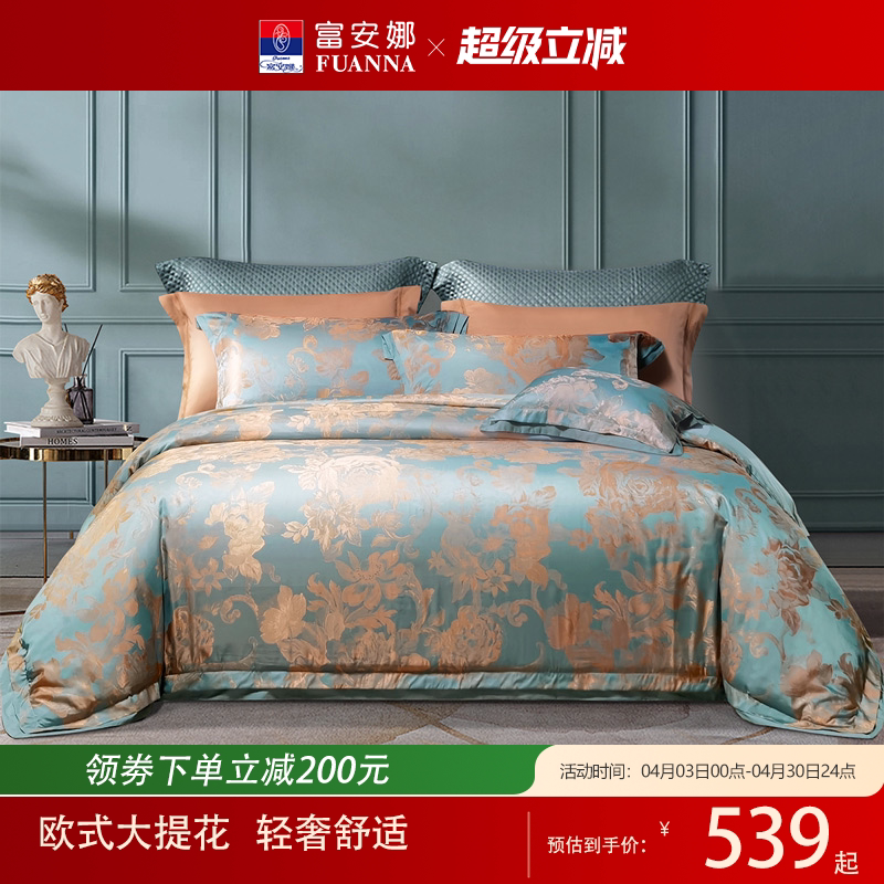 富安娜欧式提花纯棉床单四件套全棉被套床品套件冬季轻奢床上用品