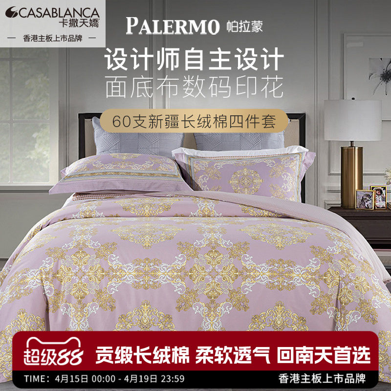 卡撒天娇60支长绒棉四件套贡缎欧式全棉纯棉套件高档欧式床品床笠