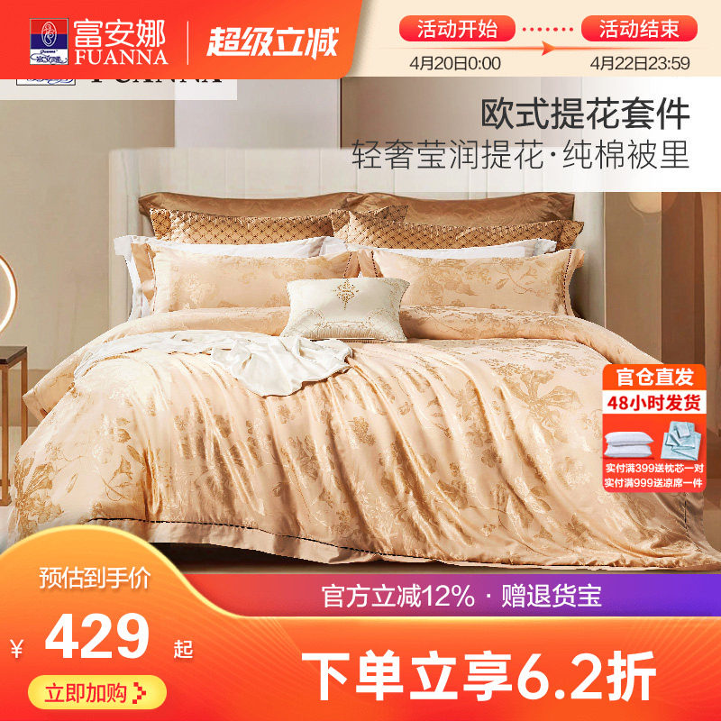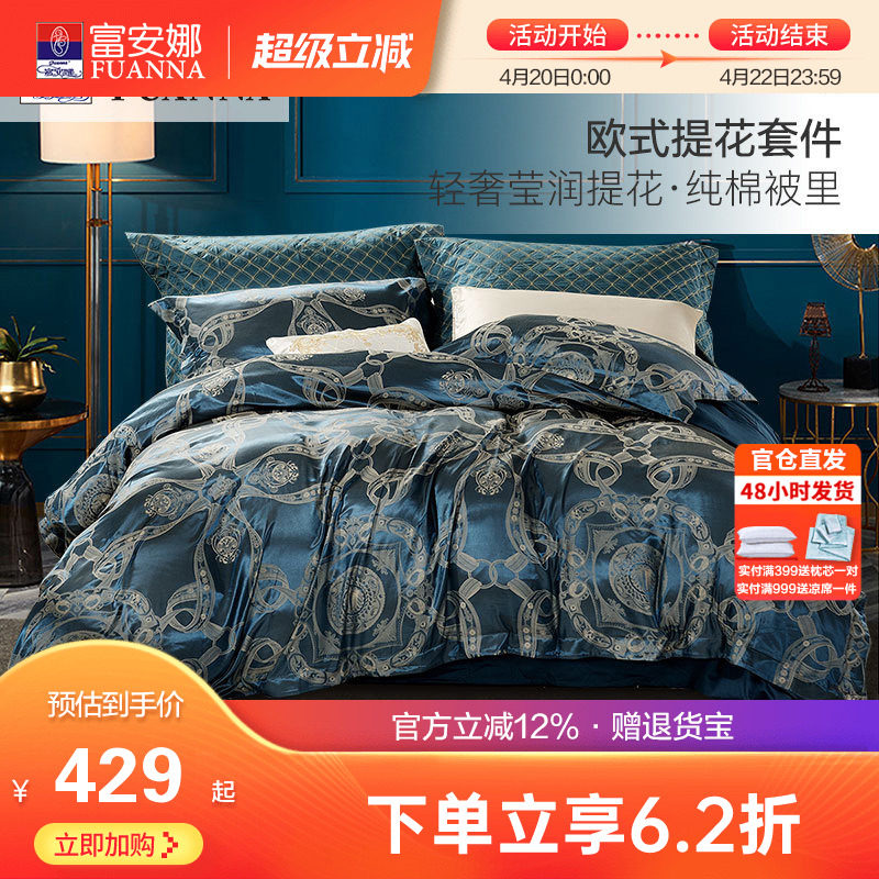 富安娜床品套件被套被罩欧式提花四件套全棉纯棉床单奢华床上用品