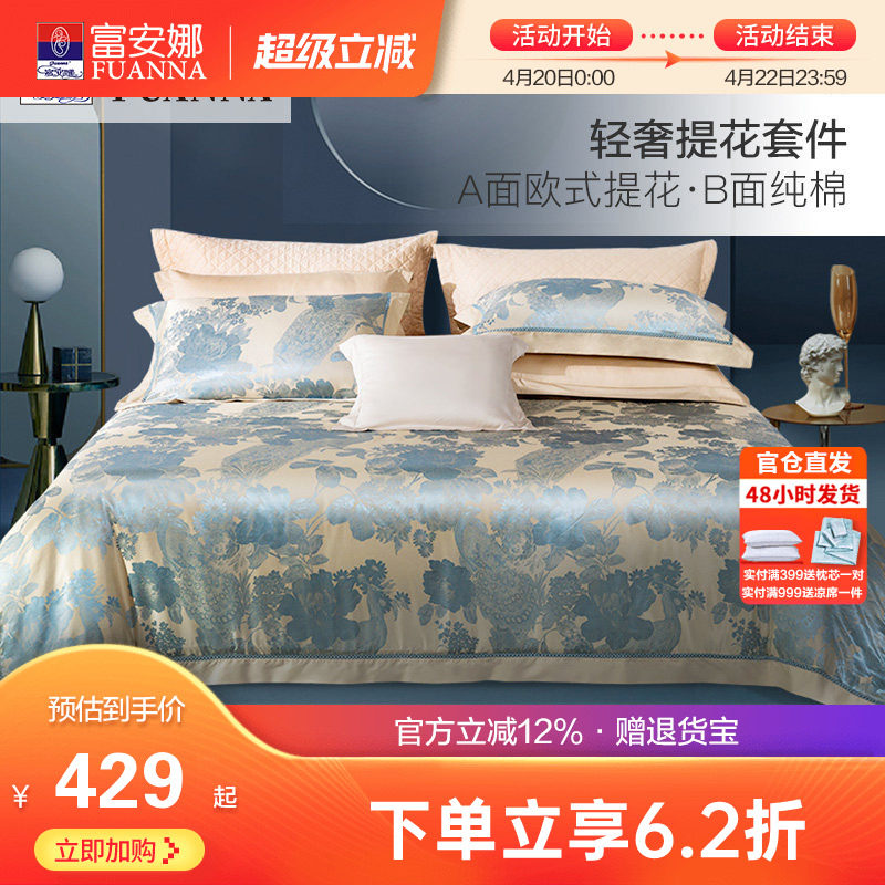富安娜家纺四件套纯棉被套提花套件欧式奢华高档床上用品全棉床单