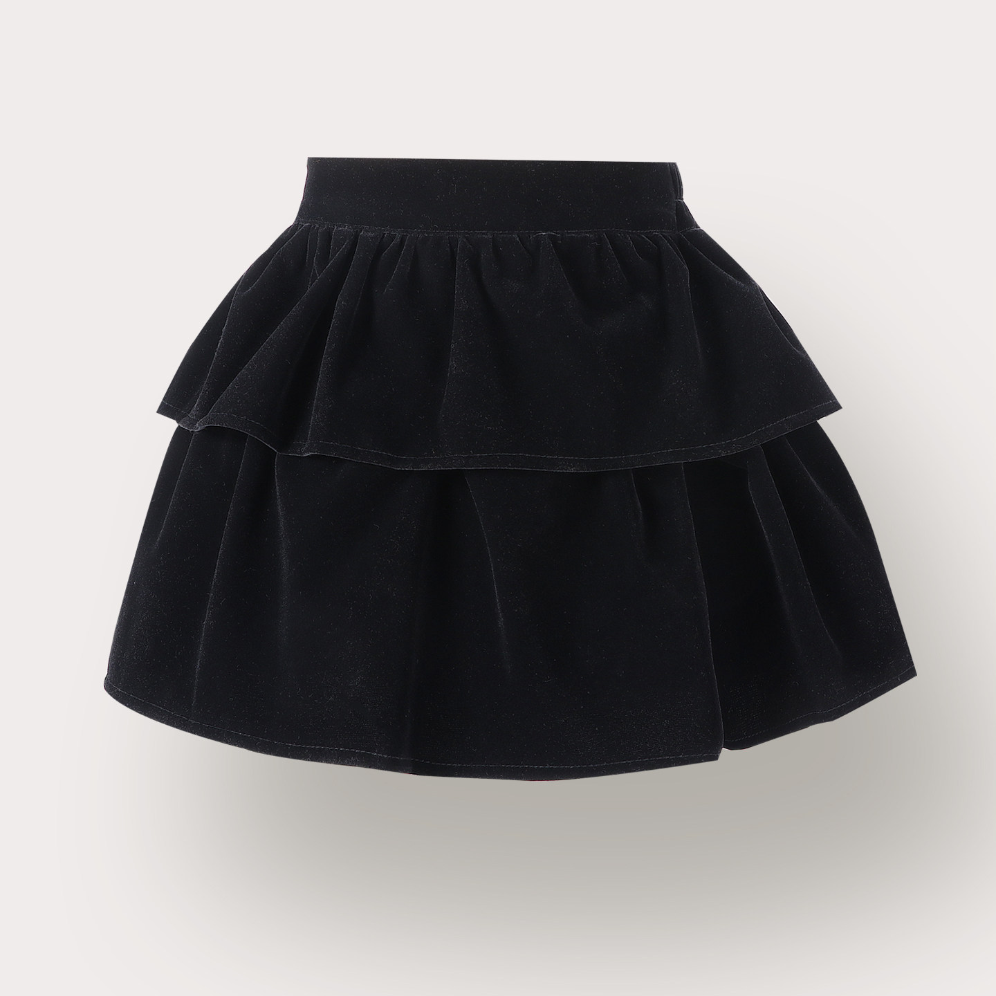 儿童金丝绒蛋糕短裙秋冬复古蓬蓬女童半身裙高腰洋气中大童荷叶边