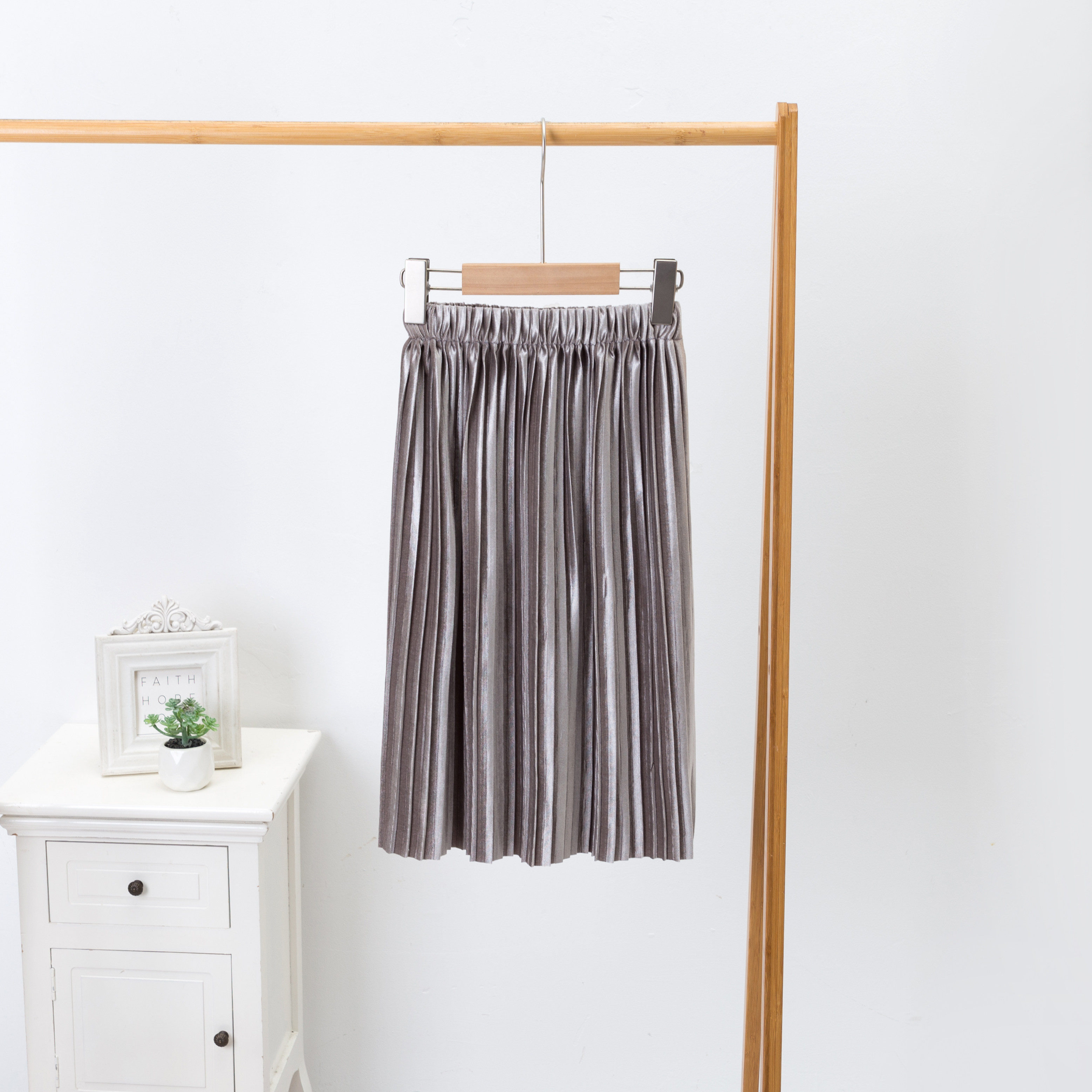 童装 女童金丝绒 中长裙 春秋冬季新品 儿童金属质感百褶半身裙