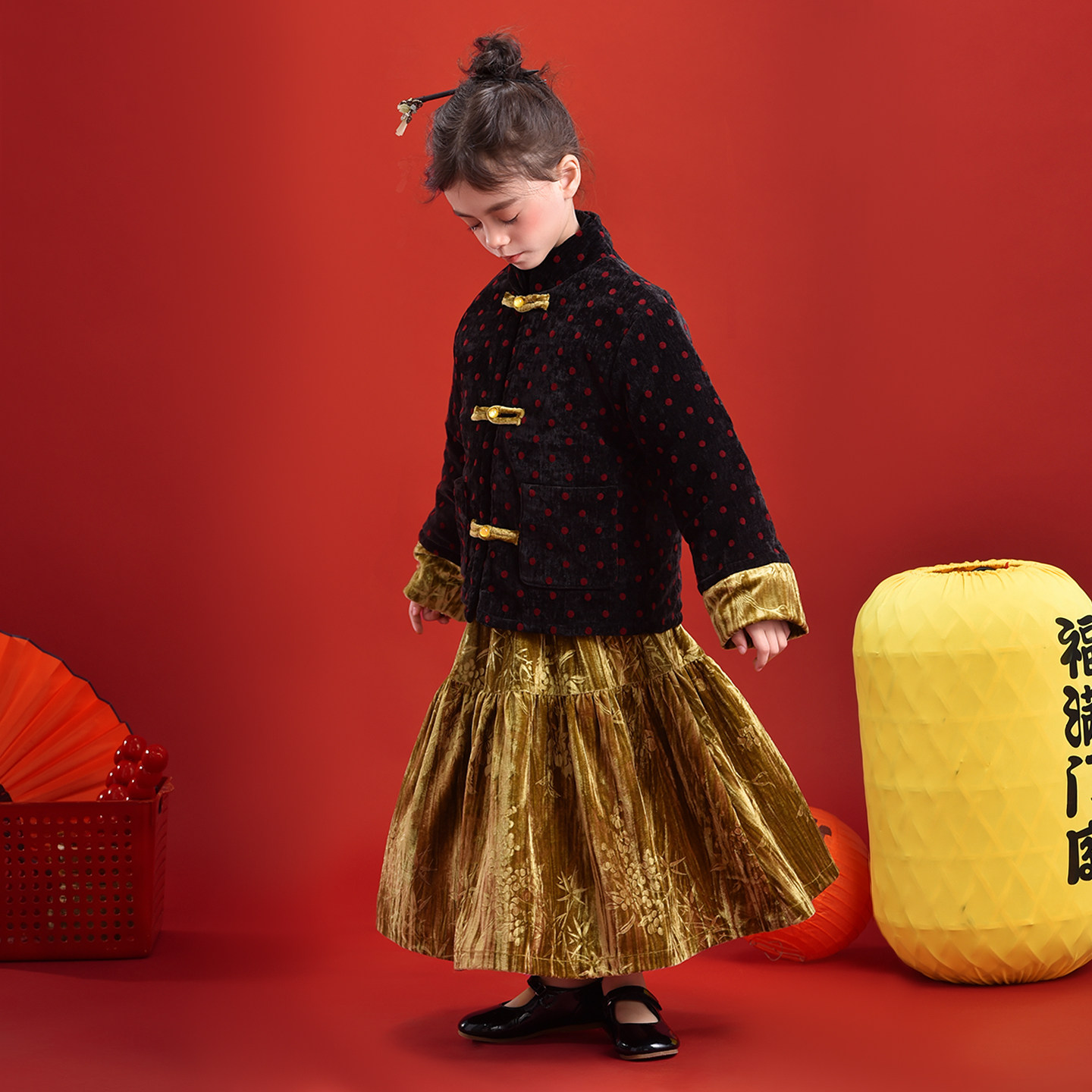 小蜜糖童装秋冬新款"喜上眉梢"金丝绒拜年服半身长裙女童百搭半裙