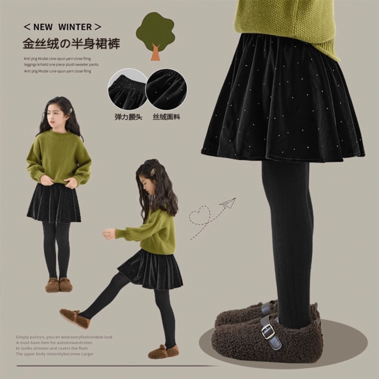 女童蓬蓬百褶半身裙2026春秋冬新款洋气时髦金丝绒防走光A字裤裙6